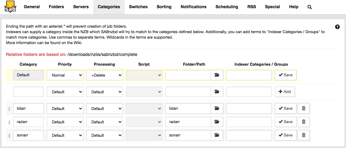 - Go to SABnzbd Config